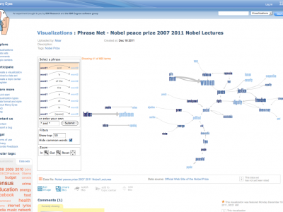 Many Eyes Dans un monde où l’information est toujours plus abondante, le professionnel rencontre souvent des difficultés – même s’il utilise des méthodologies de recherche efficaces – pour analyser et traiter des volumes d’information qui peuvent être importants. De nombreux outils, dont plusieurs gratuits, peuvent heureusement lui permettre de manipuler les données, de les visualiser graphiquement et de mettre ainsi en évidence modèles et tendances. Quelques dossiers et supports sur les outils de visualisation de l’information Pour découvrir ces outils, on pourra... Lire la suite